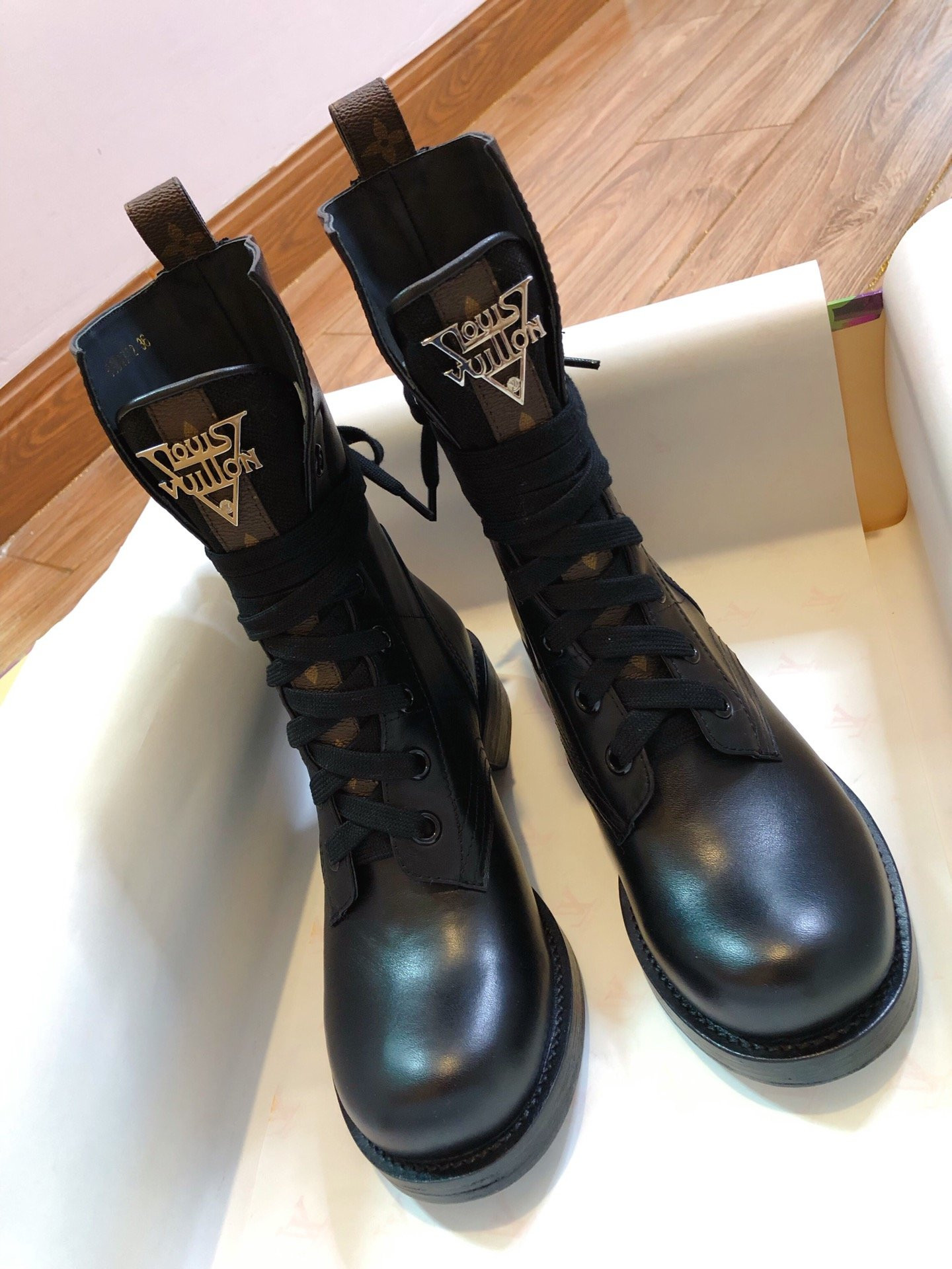 G*u*i embroidered leather ankle boot with belt